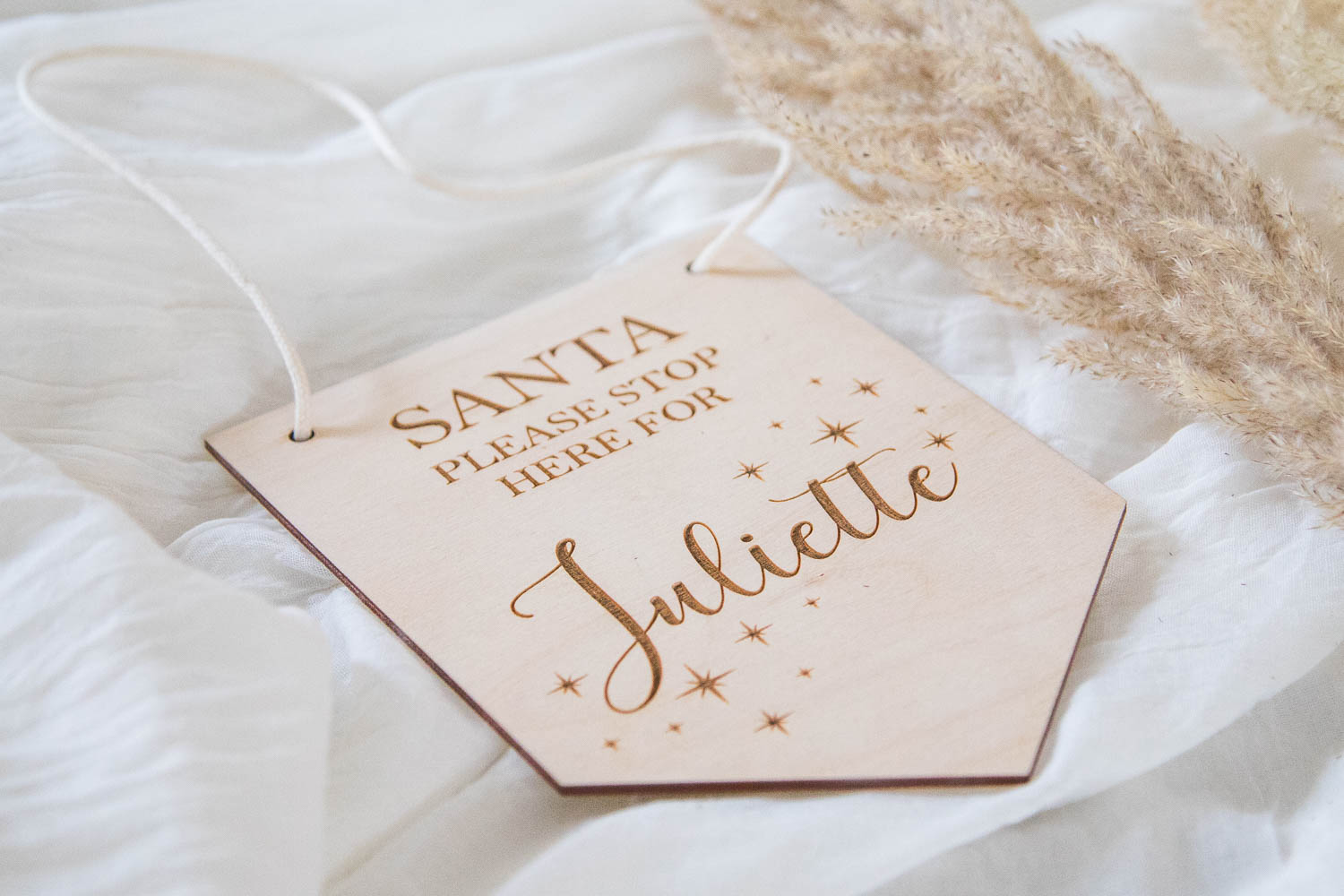 Het is de drukste tijd van het jaar voor de Kerstman! Help hem door een bord op te hangen dat hem precies vertelt waar hij moet stoppen. Onze houten kerstmanbordjes met gravure “Santa Please Stop Here” vertellen de Kerstman voor wie en waar hij moet stoppen om cadeautjes af te geven. Ze kunnen zelfs worden aangepast met de namen van alle kinderen in huis!